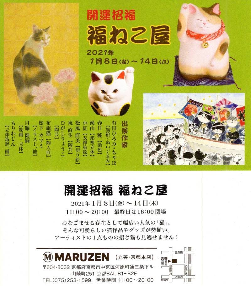 | ◆開運招福 福ねこ屋◆ 時:2021年1月8日(金)〜14日(木) 11:00〜20:00(最終日は午後5時まで) 所:丸善京都本店 B2F MARUZENギャラリー 〒604-8032 京都市中京区河原町通三条下ル山崎町251 京都BAL 地元・京都の丸善でのグループ展に初参加します。 梶井基次郎の「檸檬」という小説のラストシーンにちなんで 本当のレモンを置く人たちのために「レモン置き場」があるらしいです! 在廊はしませんが、期間中に訪ねてみる予定です♪ ※クリックすると大きな画像でご覧いただけます。 ※お陰様で終了しました、来場下さいました方有り難うございました。 |