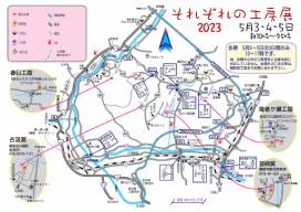| ◆それぞれの工房展◆ 時:2023年5月3日(祝)~5日(祝) 所:春日工房自宅ほか綾部市・福知山市の4工房 今年の参加工房は4か所です。 (★福知山市のcannaと綾部市のスタジオ・トノノはお休み) 海老ケ瀬工房(陶・織・・・綾部市) 古汲窯(陶・・・綾部市) 苔柿窯(陶・・・綾部市) 春日工房(木工・染め・・・福知山市) 新型コロナウイルス感染予防のために3年間お休みしましたが、 やっと復活いたしました! 気持ちのいい季節に里山の散策がてら是非お越しくださいませ。 DMハガキが出来次第、順次ご縁のある方々にお送りしますが、 ご所望の方は当ホームページのメール欄で住所とお名前をお知らせくださいませ! ※クリックすると大きな画像でご覧いただけます。 詳しい地図は、以下のリンクからダウンロードお願いします。 ![]() ※クリックするとpdfファイルで開きます。 ※お陰様で終了しました、来場下さいました方有り難うございました。 |