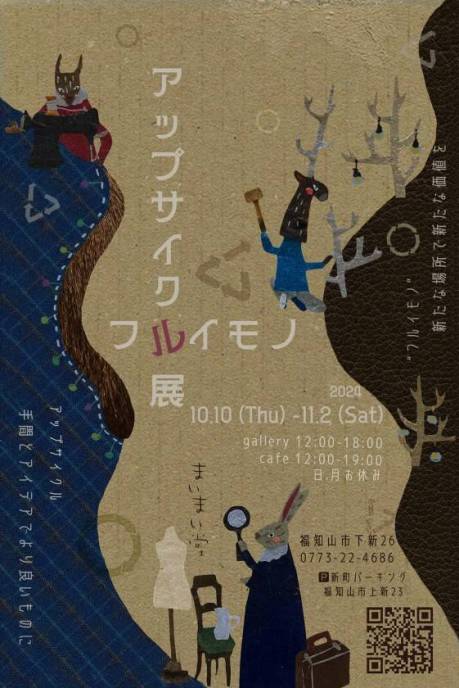 | ◆アップサイクル&フルイモノ展◆ 時:2024年10月10日(木)~11月2日(土) (日・月曜日は休み) 所:まぃまぃ堂 京都府福知山市下新26 TEL 0773-22-4686 いつものフルイモノ(骨董・古物)に加えて、「手間とアイデアでより良いものに 生まれ変わらせたアップサイクル品」を展示販売する企画展です。 春日粧はペットボトルキャップを熱で融かして作ったキーホルダーや しおりを出品します🎵 ※クリックすると大きな画像でご覧いただけます。 ※お陰様で終了しました、来場下さいました方有り難うございました。 |