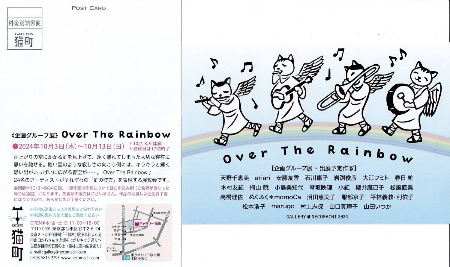| ◆「Over The Rainbow」◆ 時:2024年10月3日(木)~10月13日(日) 10/7・8・9は休廊 11:00~18:00 所:ギャラリー猫町 〒110-0001東京都台東区谷中 2-6-24 03-5815-2293 この世での生活を終えて虹の橋を渡り、次の世へ旅立っていった 愛しい猫たち。忘れないよ!という気持ちを込めた初の企画展です。 ※クリックすると大きな画像でご覧いただけます。 ※お陰様で終了しました、来場下さいました方有り難うございました。 |