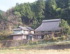 我が家はこんな感じです。右が住居にしている母屋 (築100年くらい)、左が仕事場にしている離れと土蔵(築80年くらい)です。 |