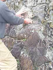 古い石垣の間が雨水で浸食されて奥が空洞になってきました。 このままだと崩れてしまうので、奥に砂利を詰めた後コンクリートですき間を埋めたのですが、素手でやったので手がボロボロになりました。 |