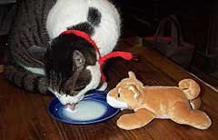 去年サンタクロースにもらったパソコン拭き係の「ちびくん」がウサちゃんと仲良くミルクを飲んでいます。(ウソ) |