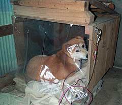 ゆず(3歳♀)の小屋の入り口にビニールの風よけをつけました。わりに気に入っているみたい。 |
