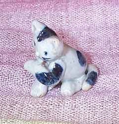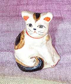 クラフトフェアで知り合ったやきもの屋さんの 猫ちゃん。まだ子どもなので手を舐めるのも ちょっと難しそうです。(笑) |