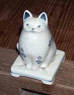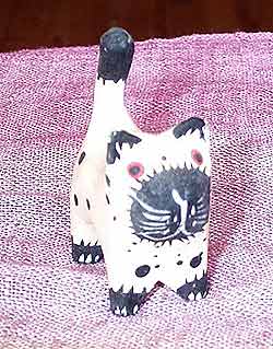 木製のにゃんこ。しっぽをピンと立てて、 ごはんが欲しいのかな? |