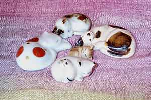 御存知「やまねこ屋」さんの素焼きの猫ちゃま。 寒いので鼻を隠してしっかり眠っています。 |